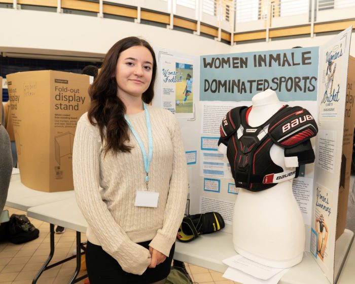 Amelia Crawley (18) focused her project on “Women in Male-Dominated Sports.” She examined the history of women breaking into sports traditionally dominated by men and the continuing barriers they face today.